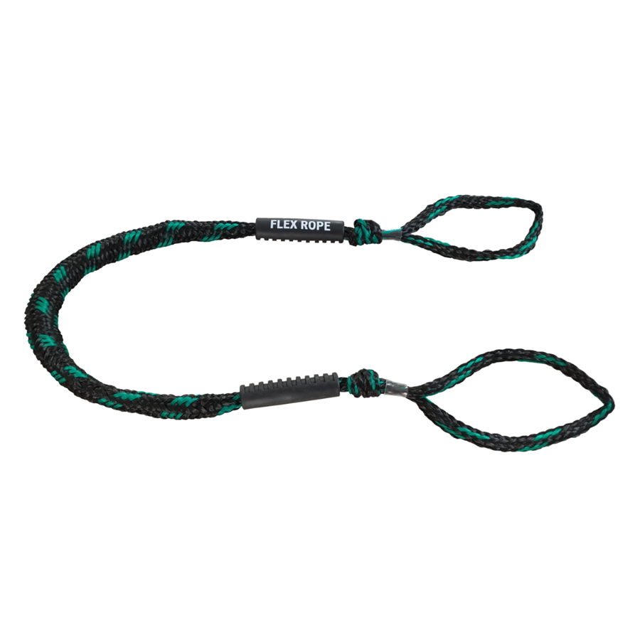 De Flex Rope heeft gevormde lussen aan beiden uiteinden voor gemakkelijke bevestiging aan de kikkers van de boot en aan de wal/aanmeersteiger. Het is ook mogelijk om de Flex Rope te bevestigen aan bolders of ogen.